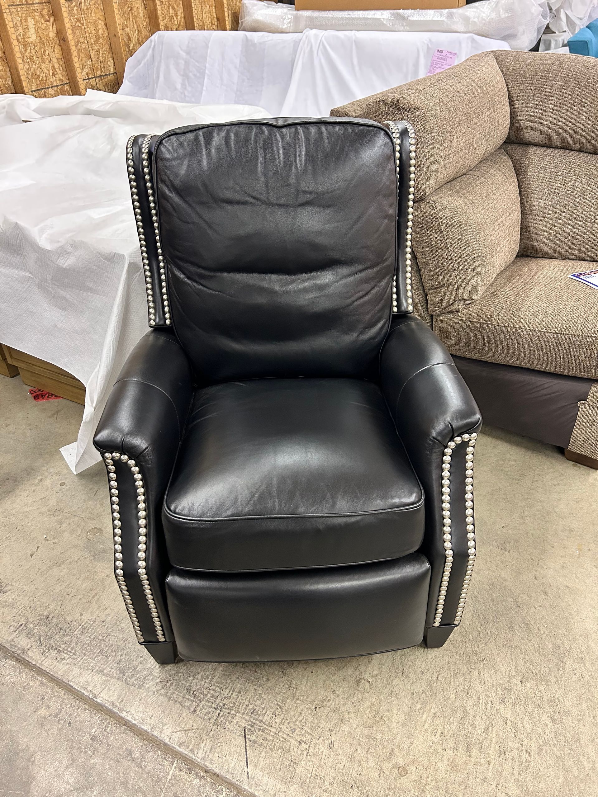 Black leather pushback recliner with nailheads