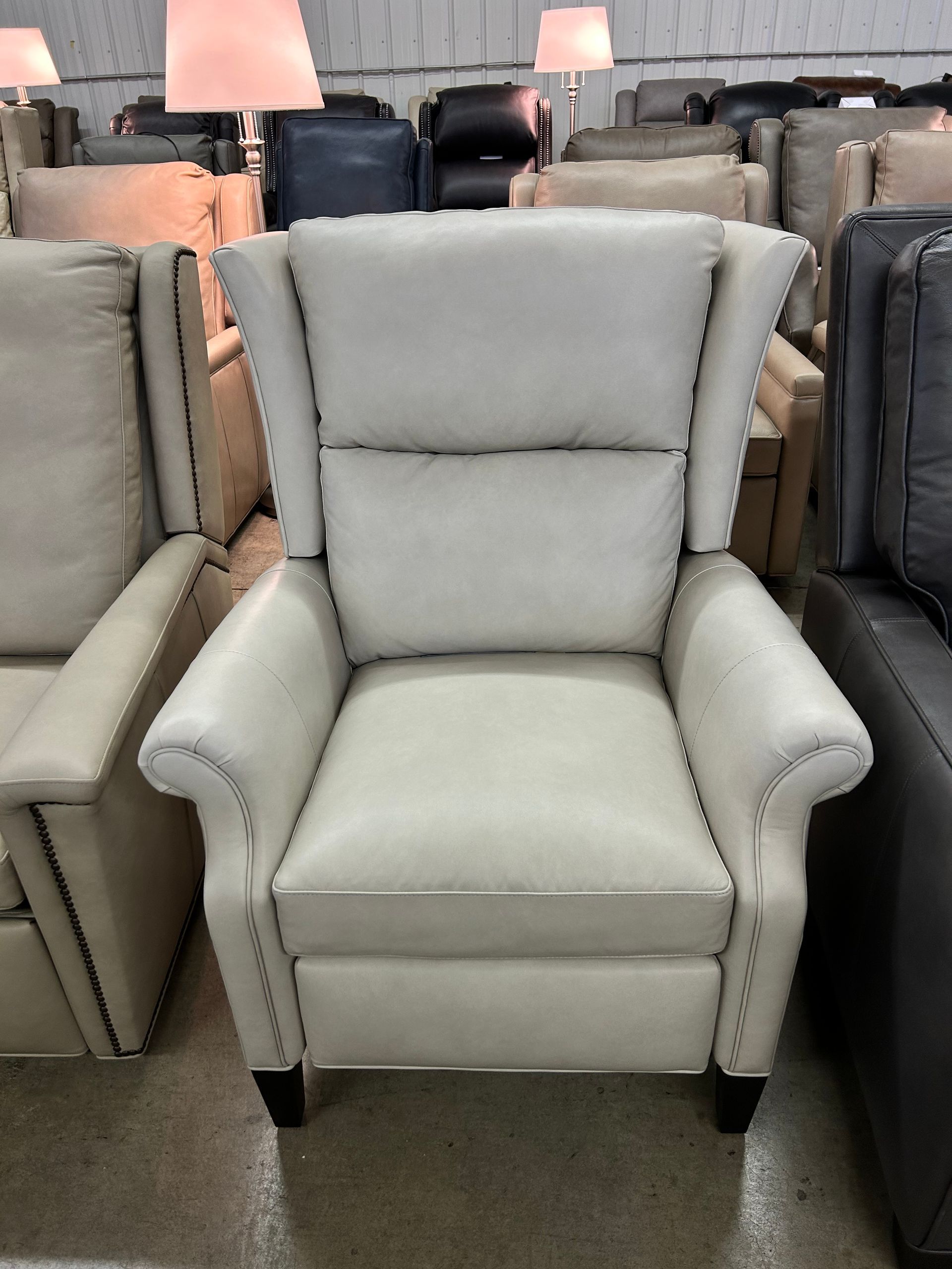 Grey leather power recliner