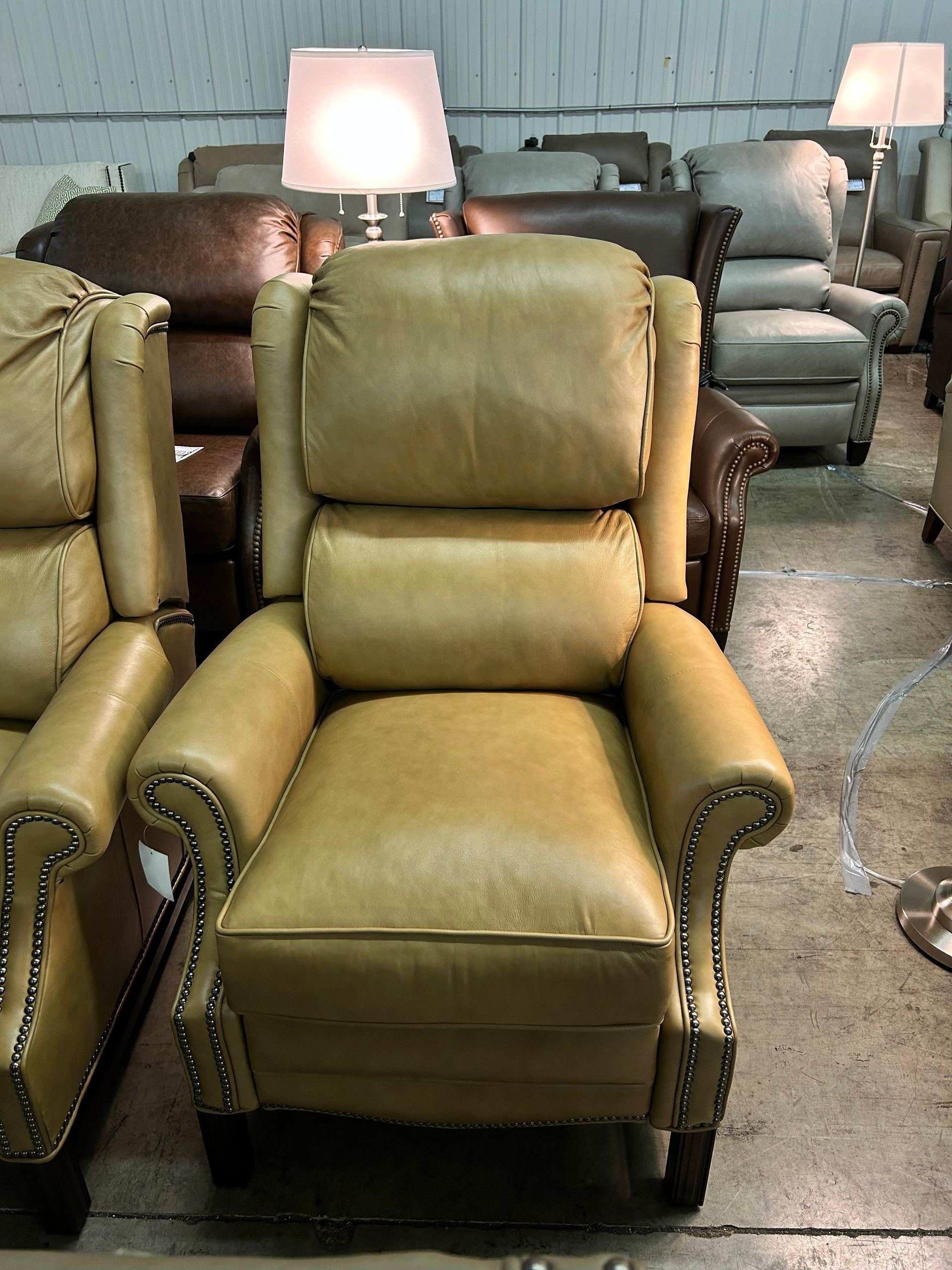 Gold leather pushback recliner