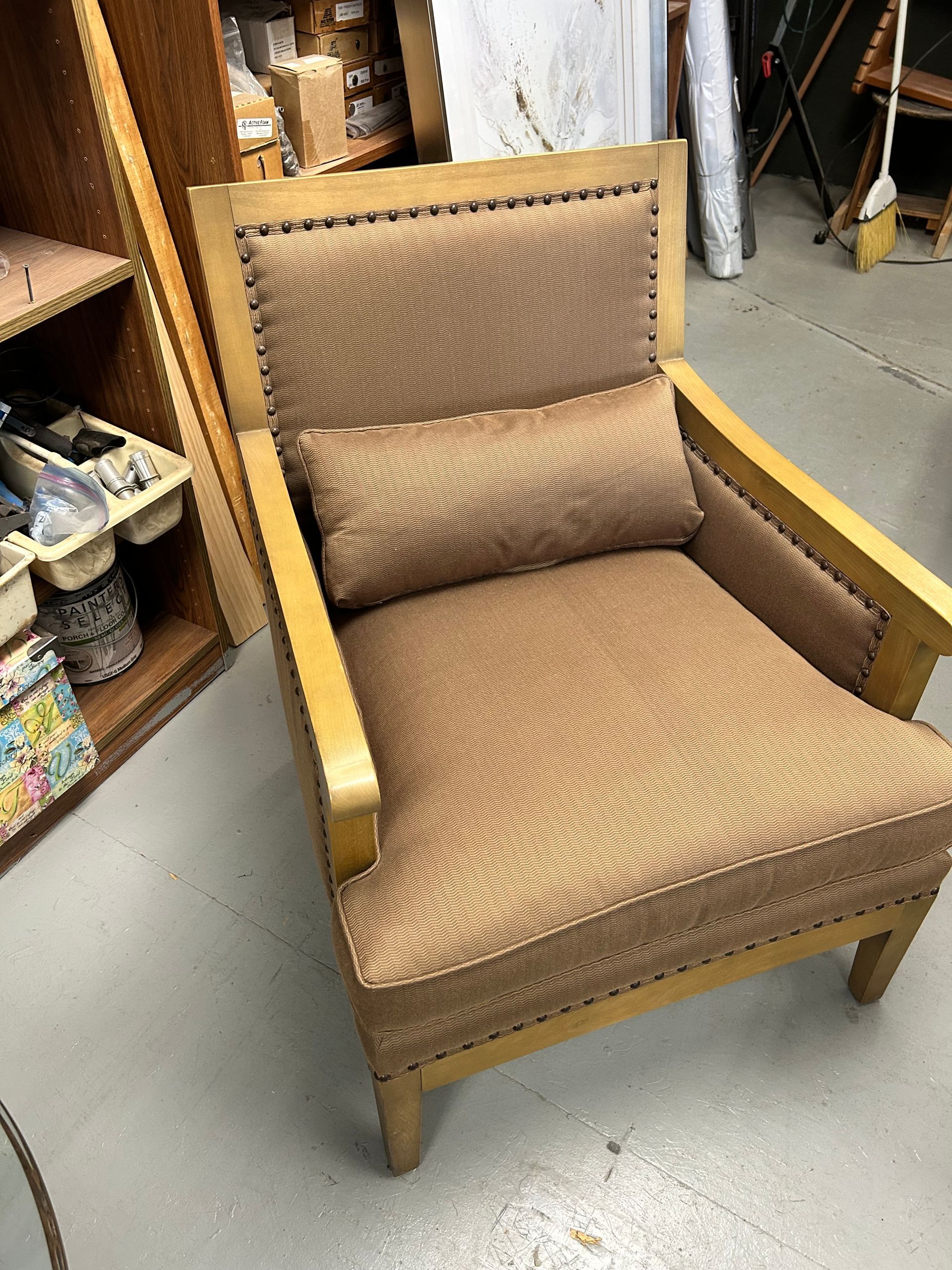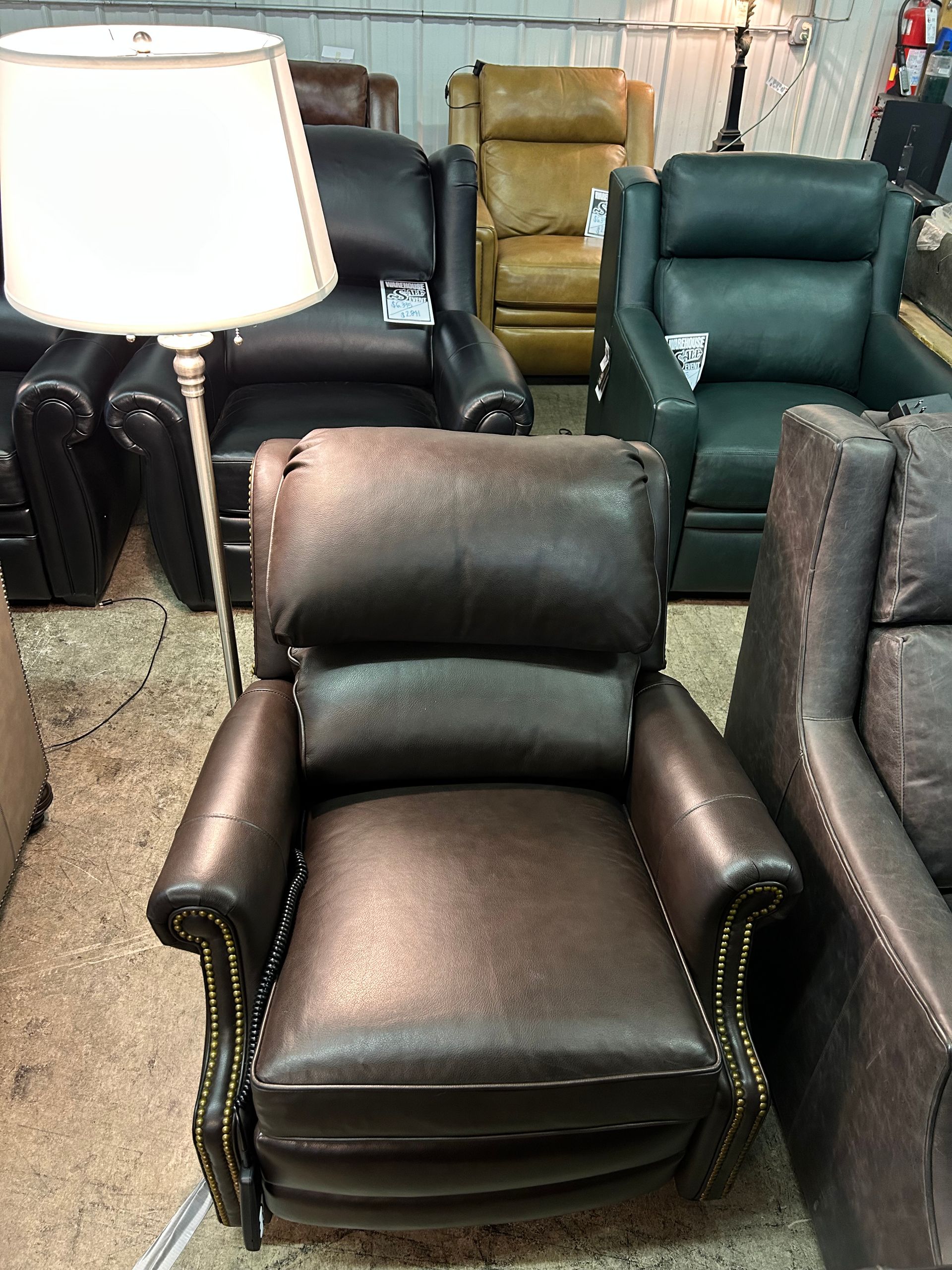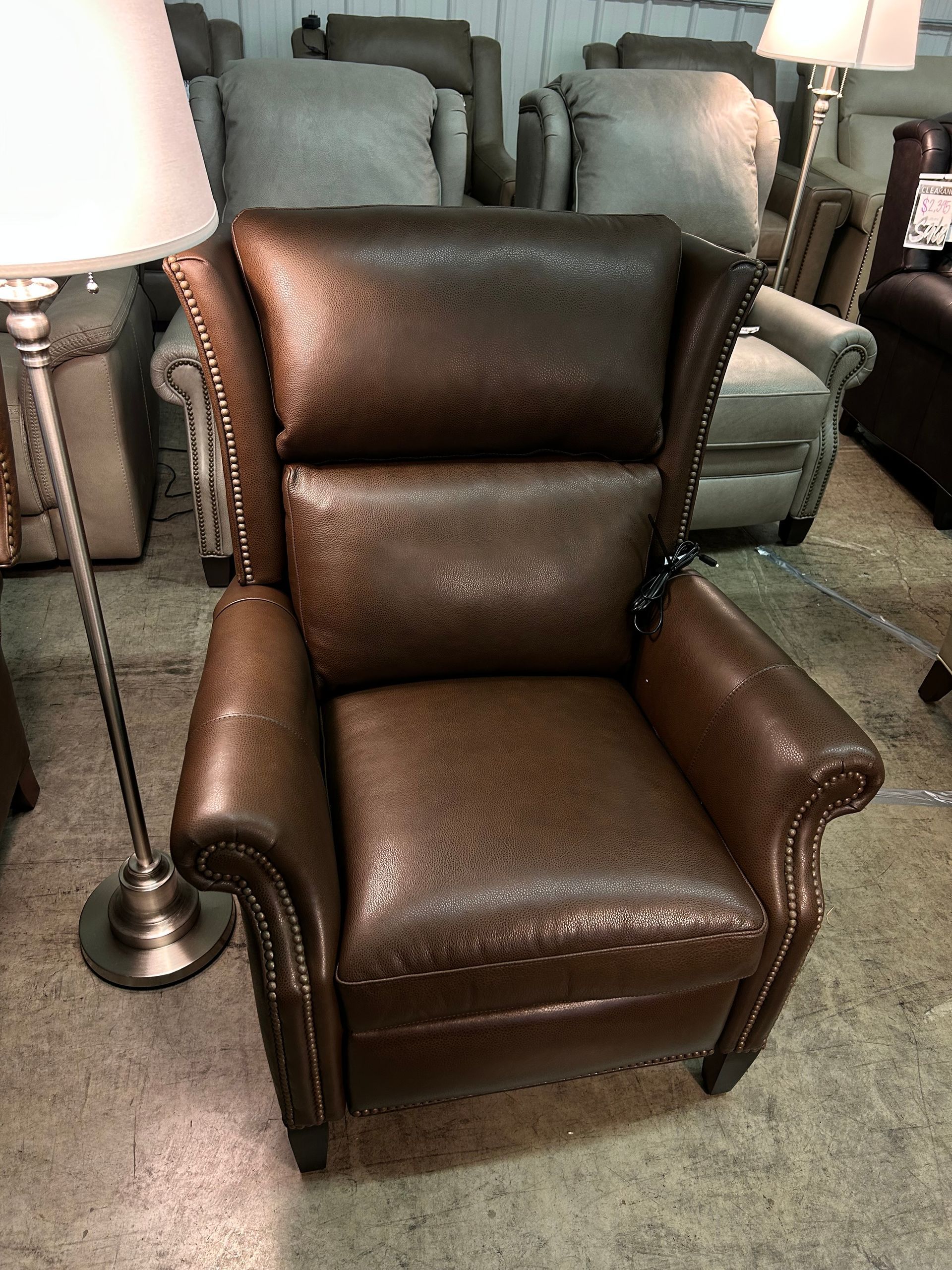 Dark brown leather power light chair with nailheads