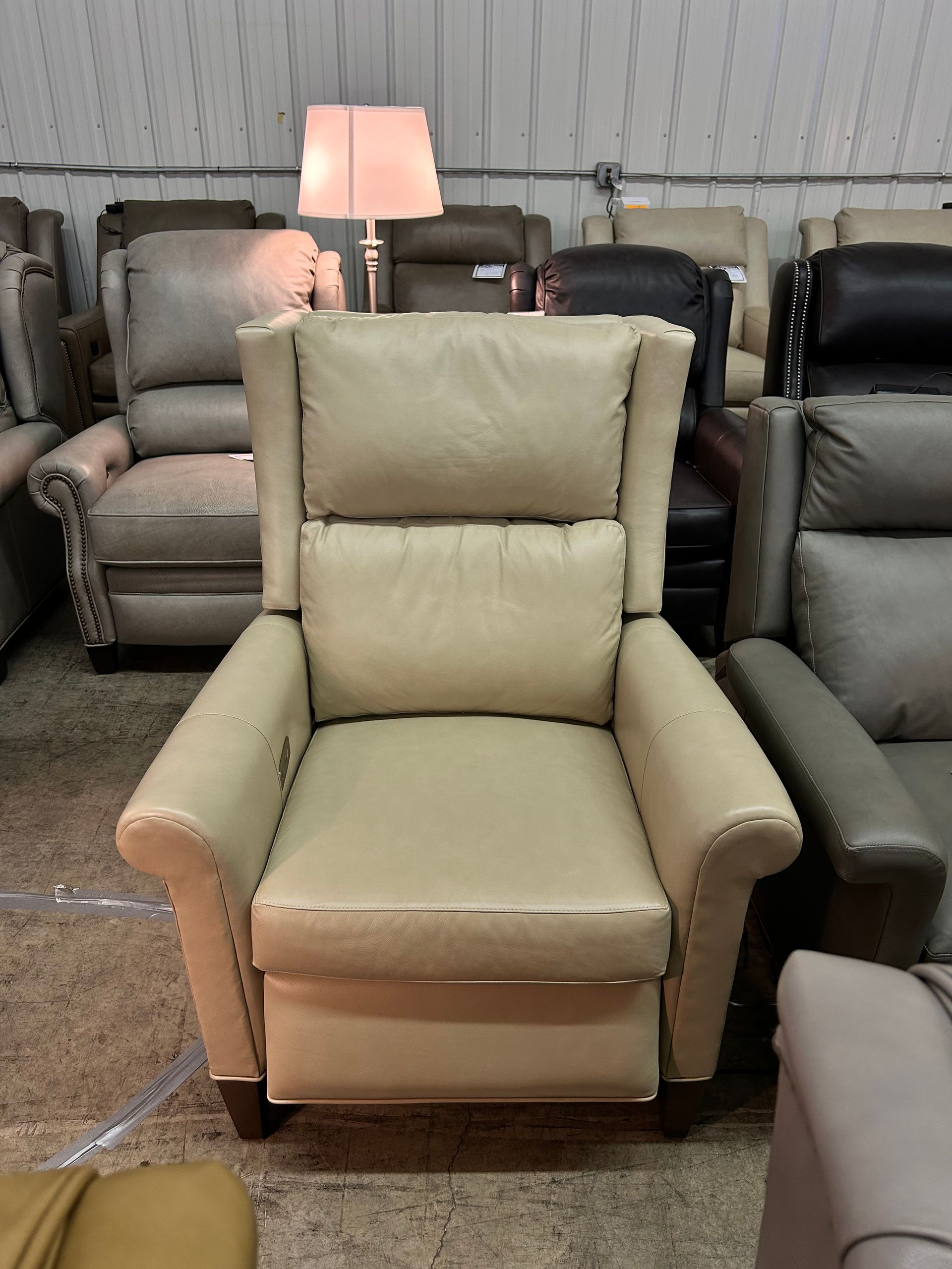 Tan leather tall back Ghent pushback recliner