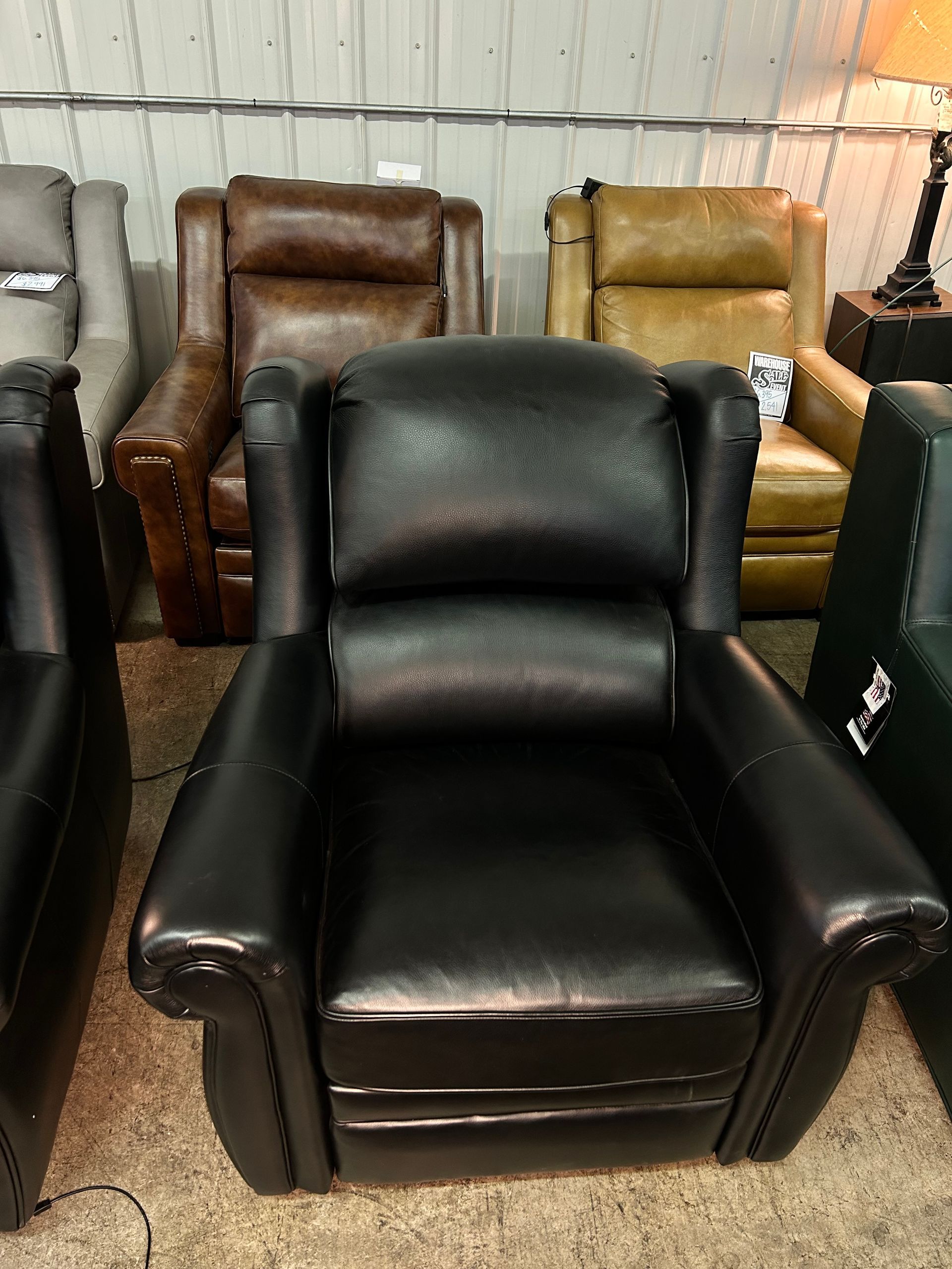Black leather power recliner with nailheads