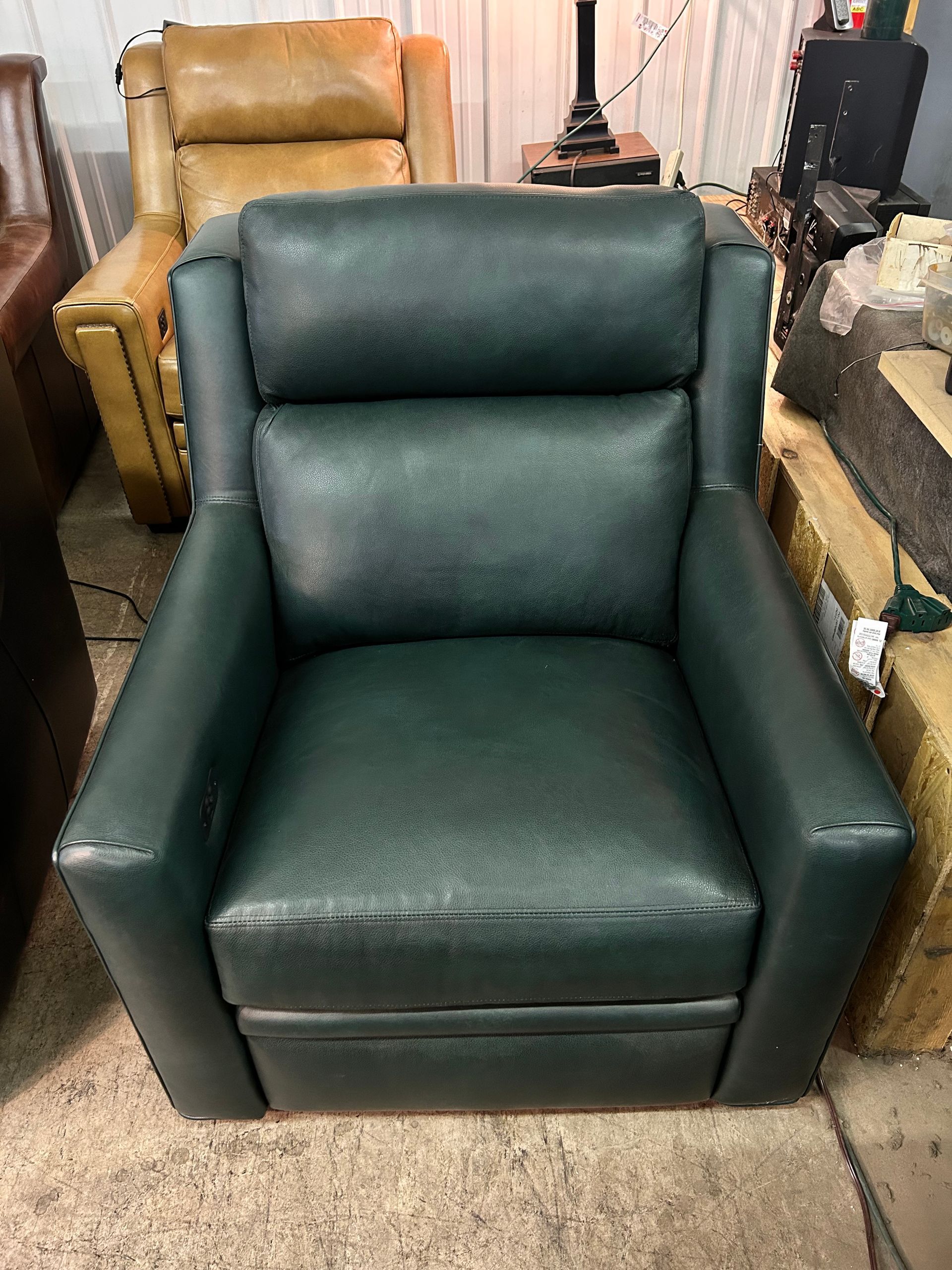 Dark green leather Imagine power recliner with articulating headrest