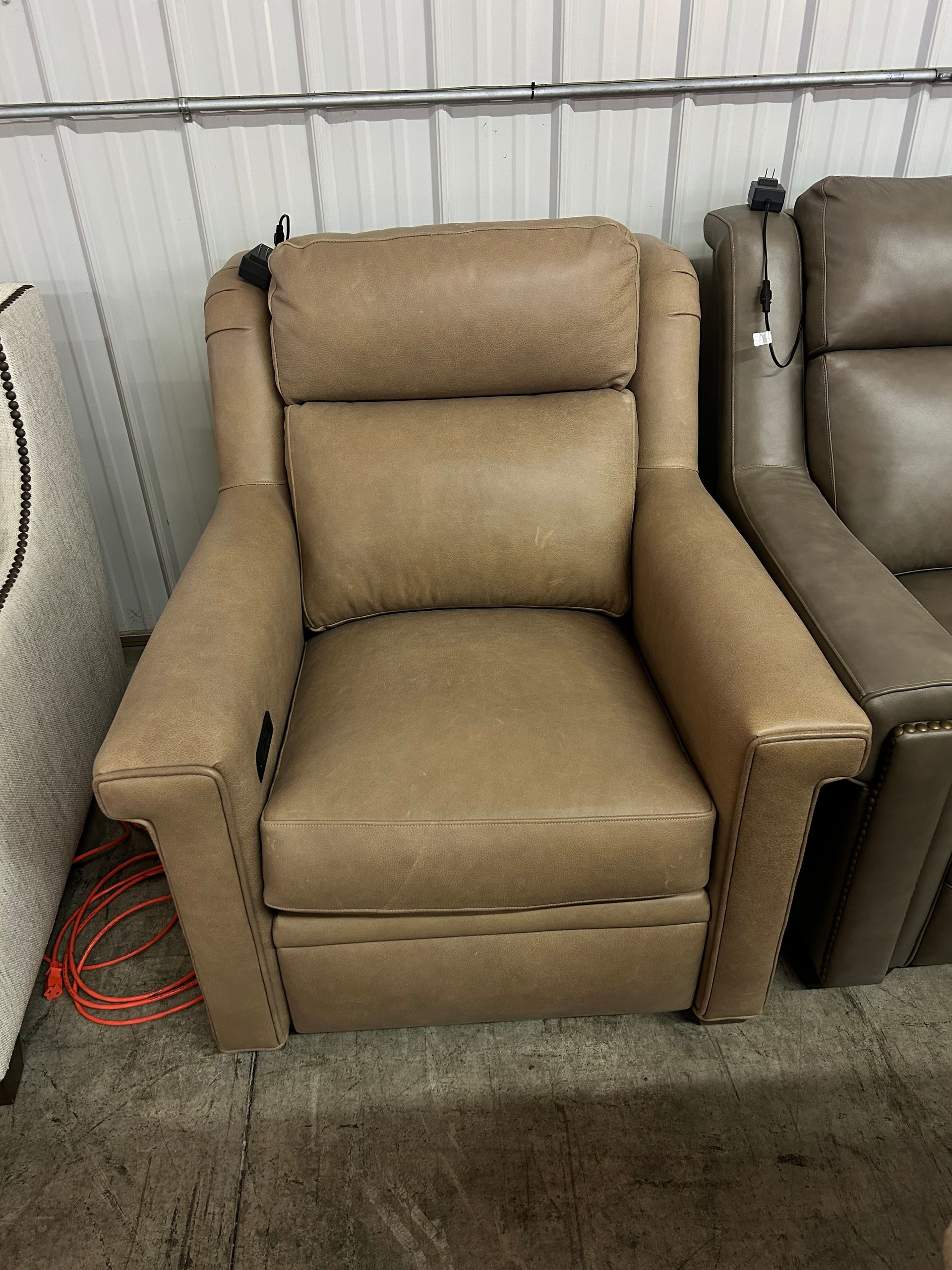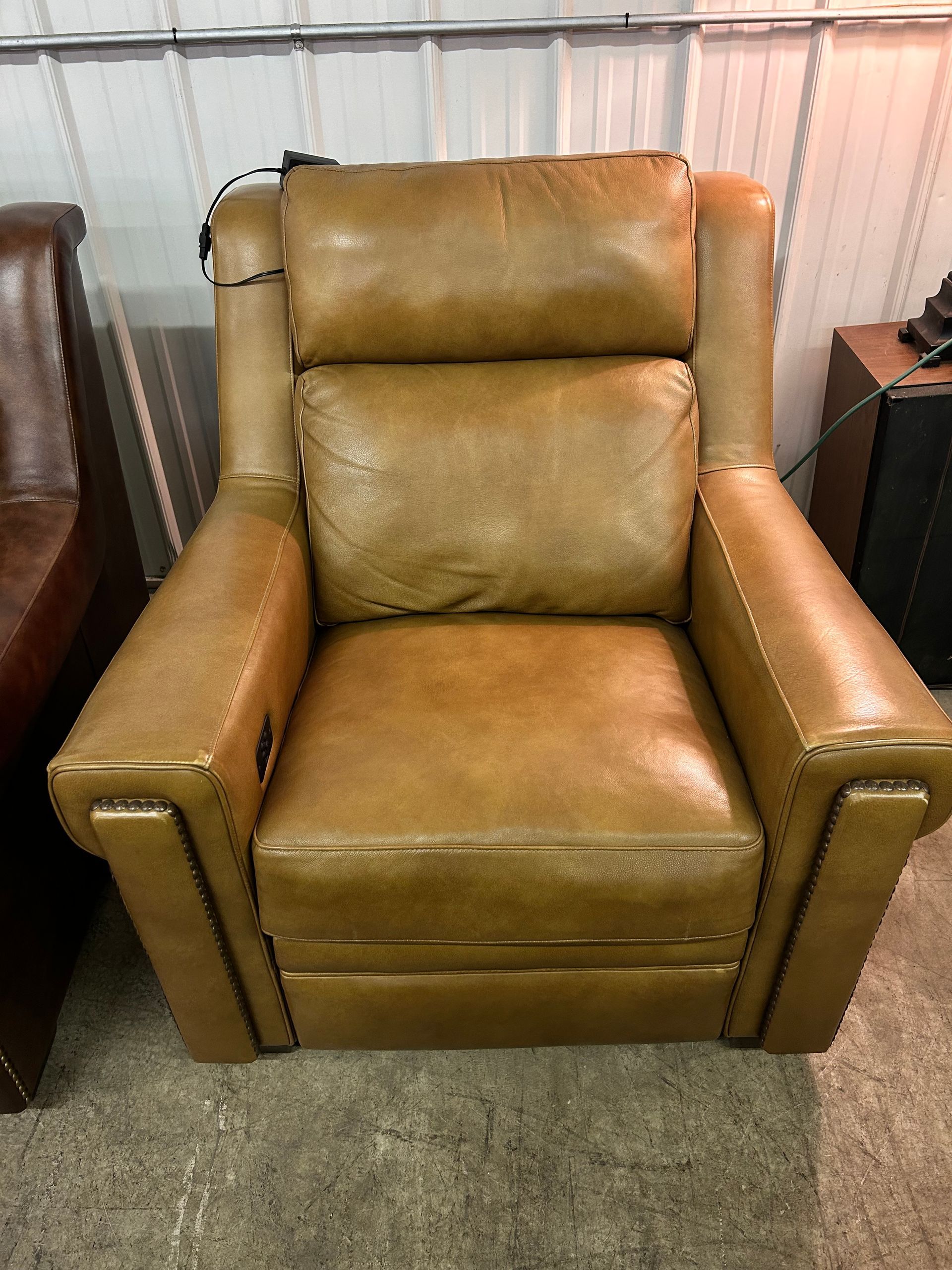 Tan leather power recliner
