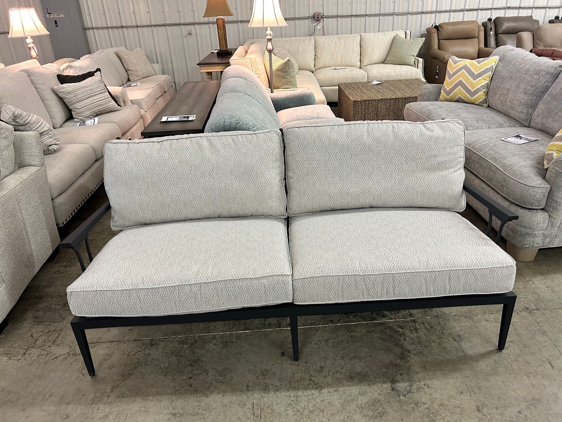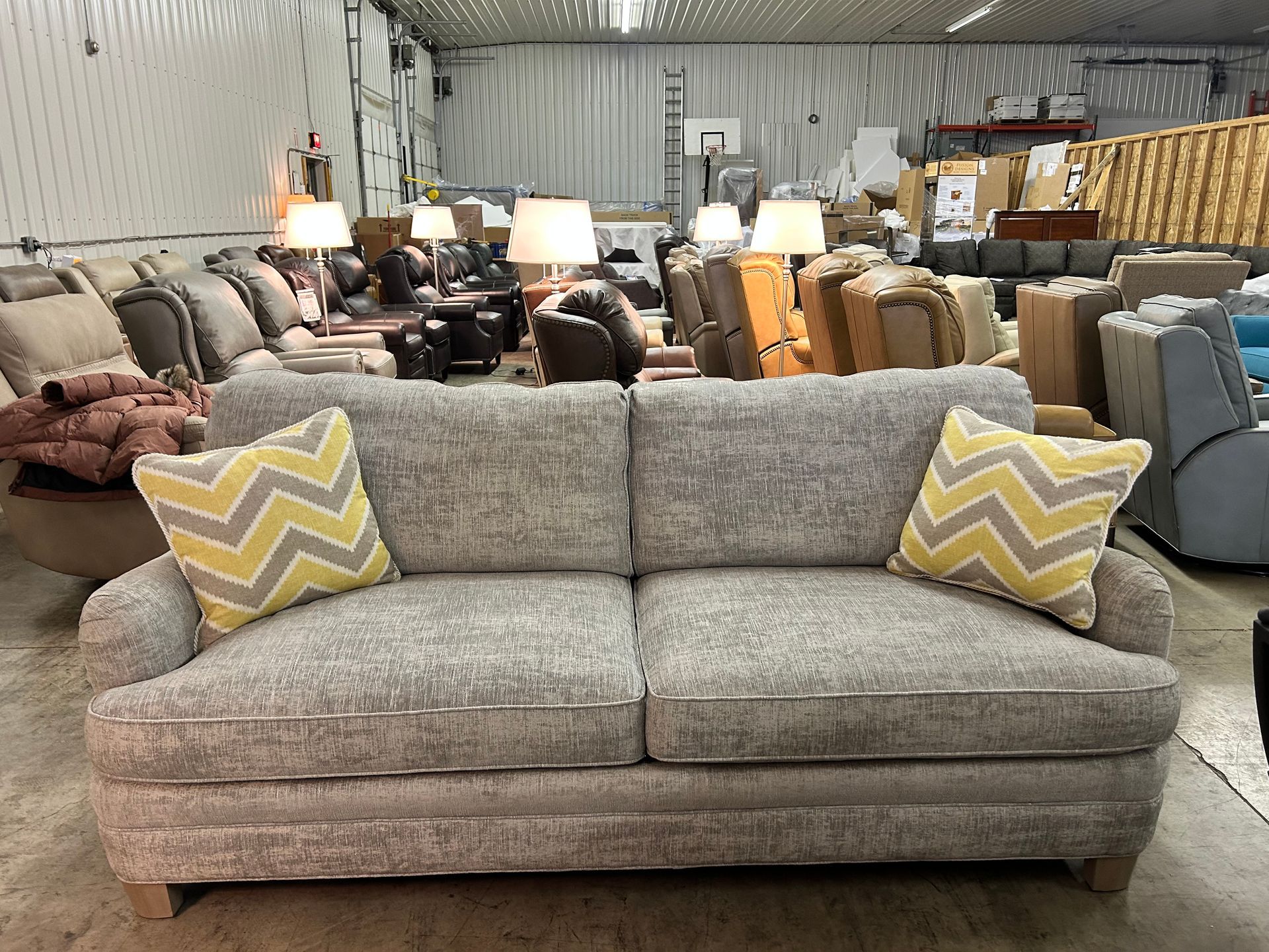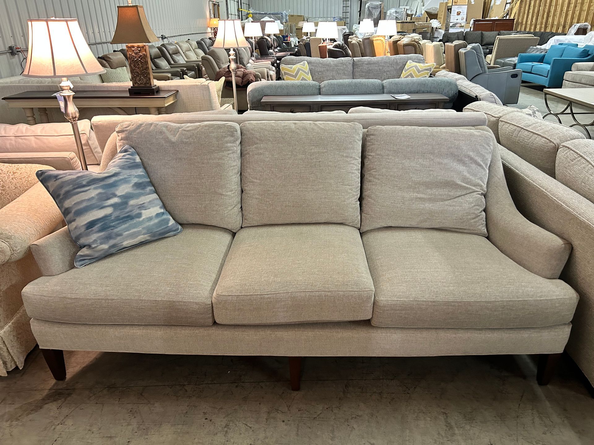 Grey upholstered 3 cushion sofa
