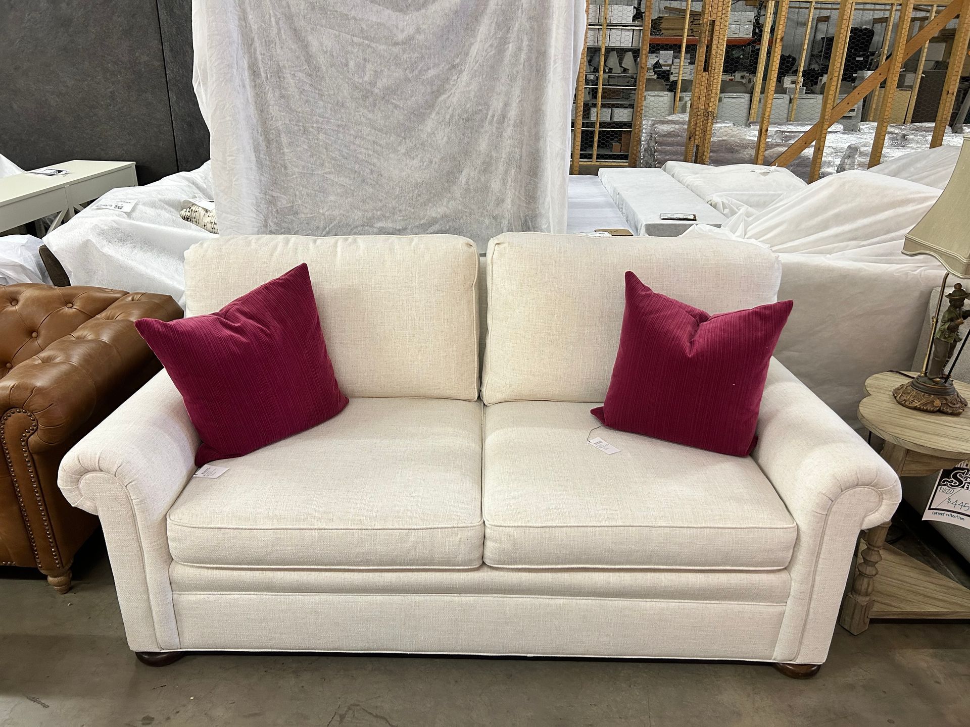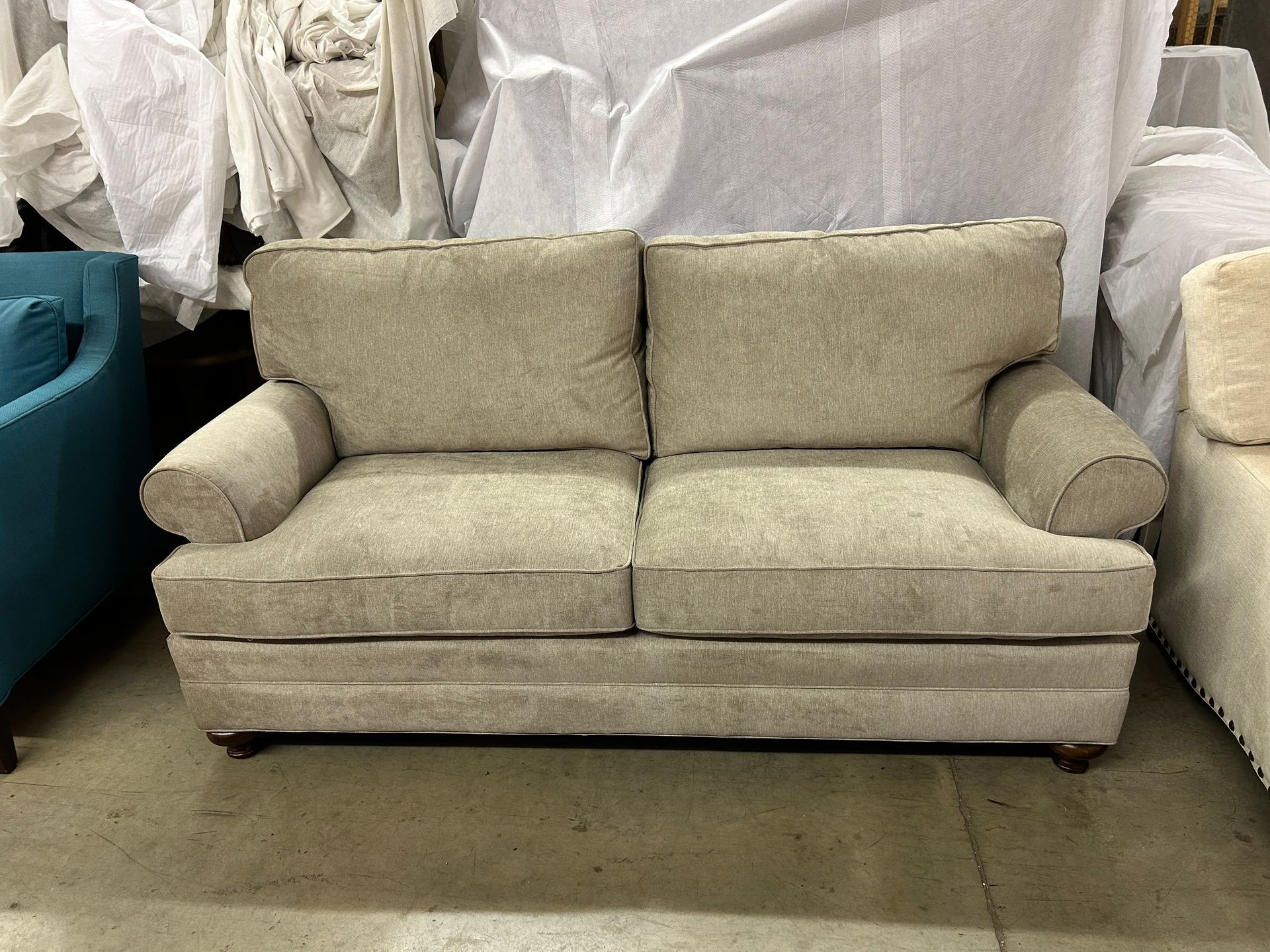 Cream upholstered 2 cushion sofa