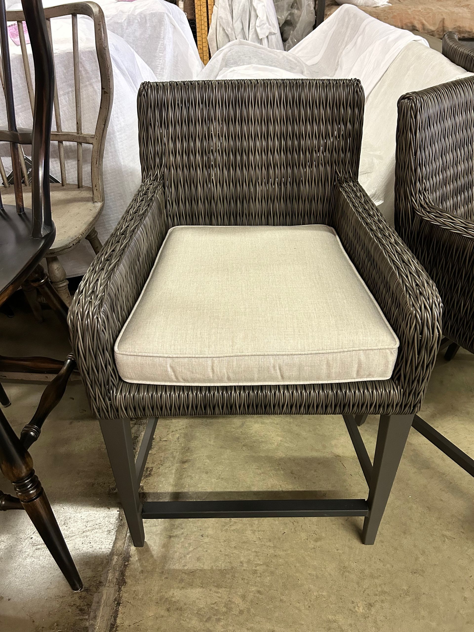 Dark brown wicker base with glass top outdoor dining table