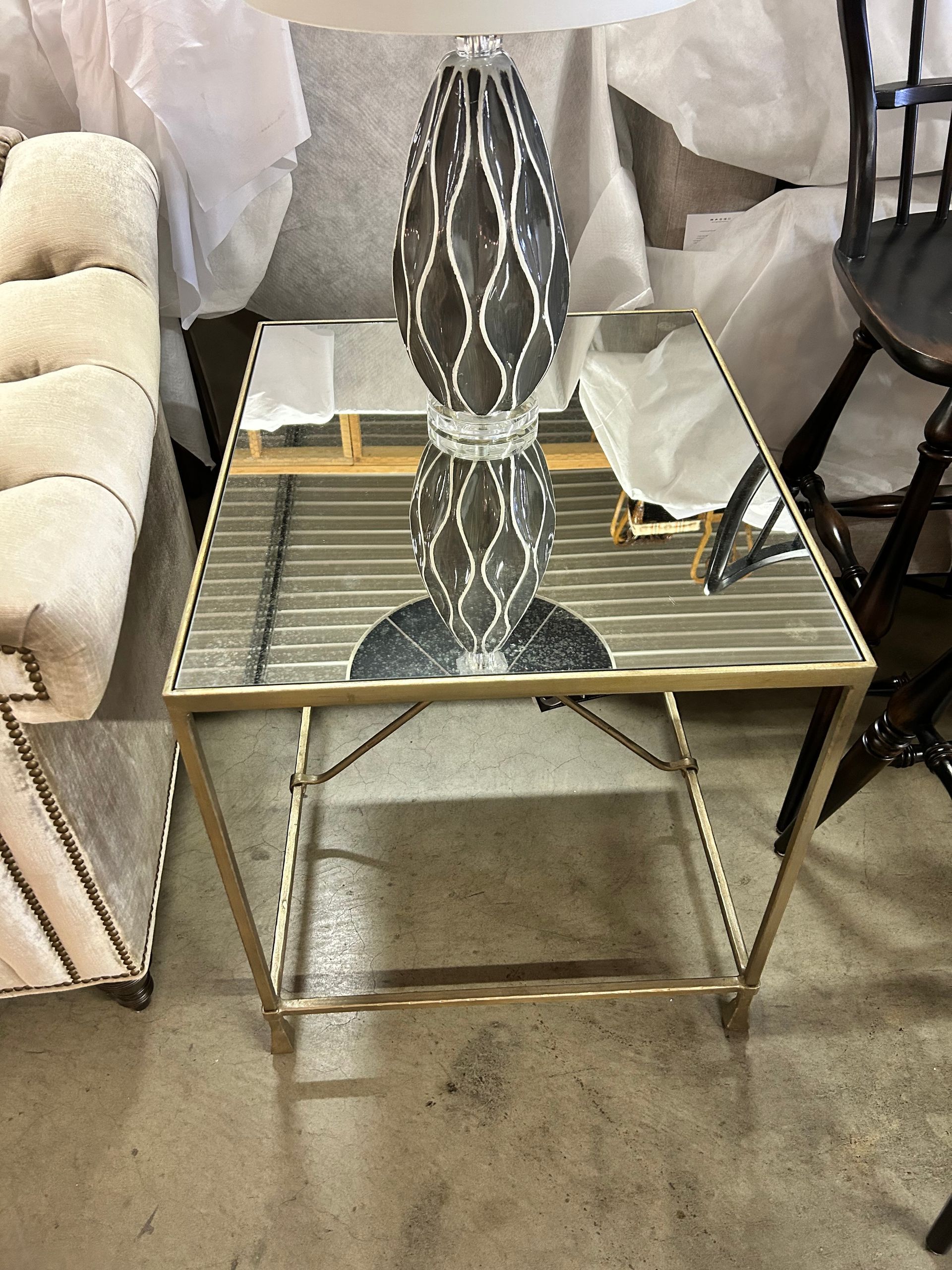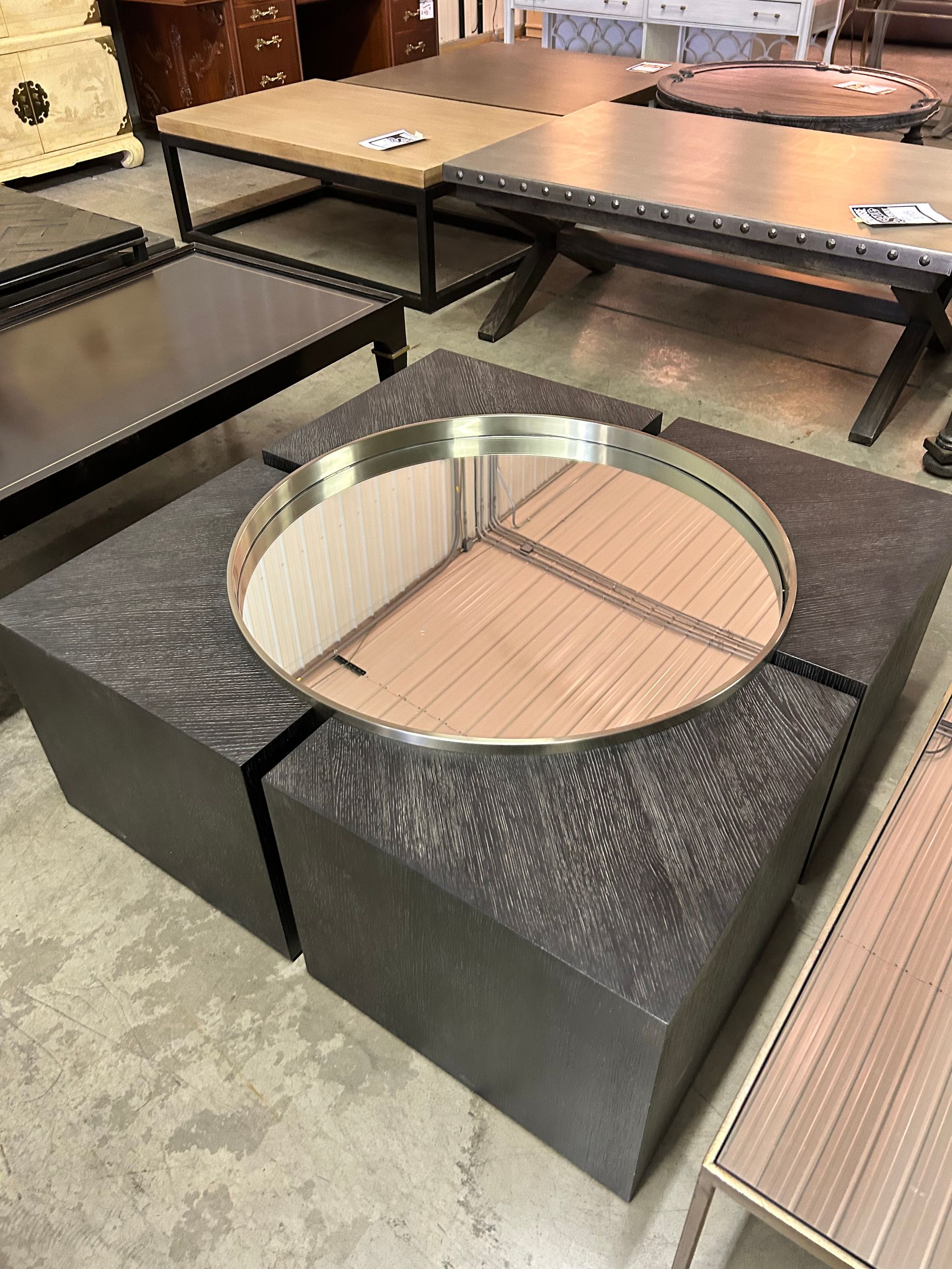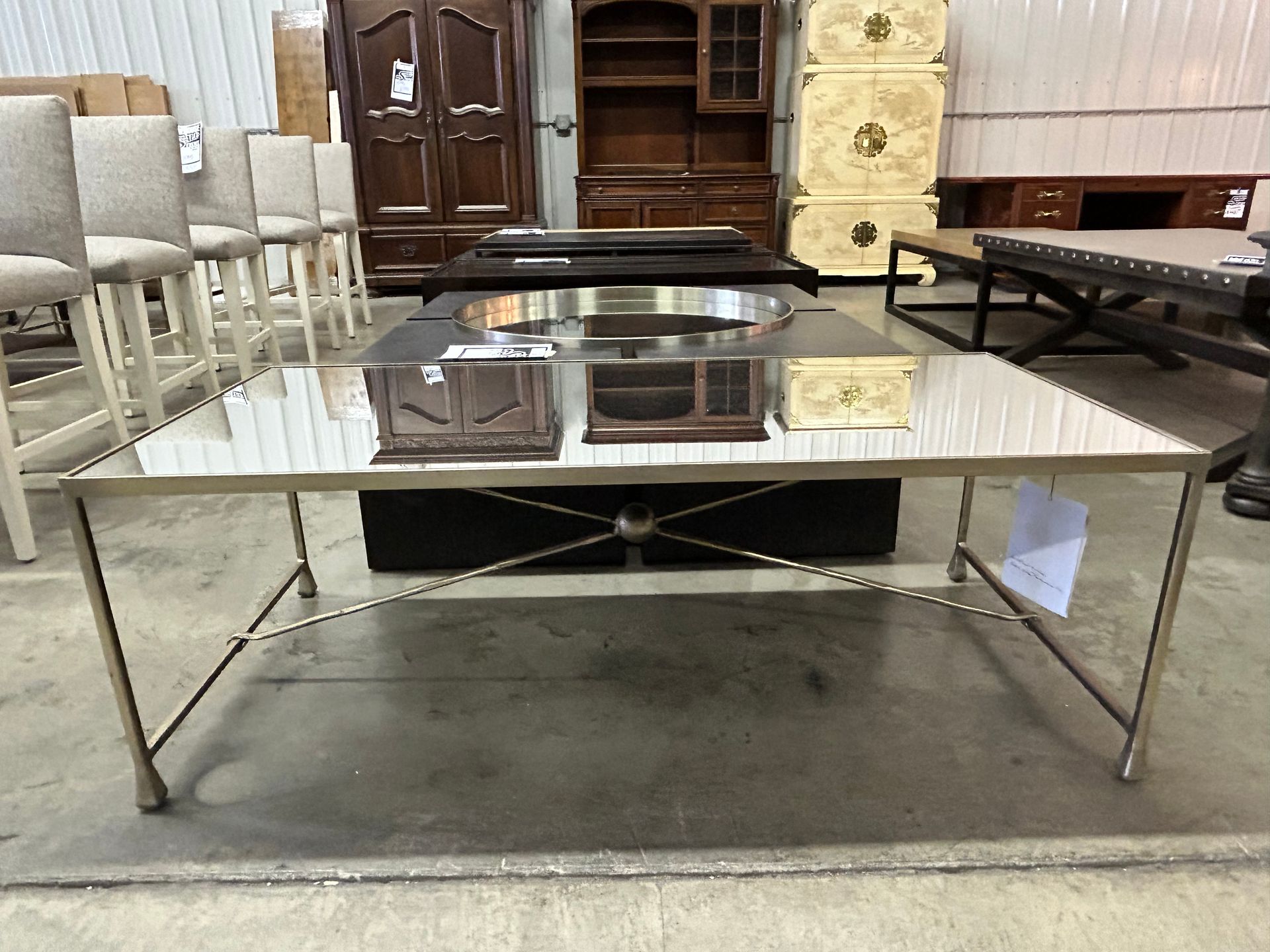 Mirror front credenza with dark wood
