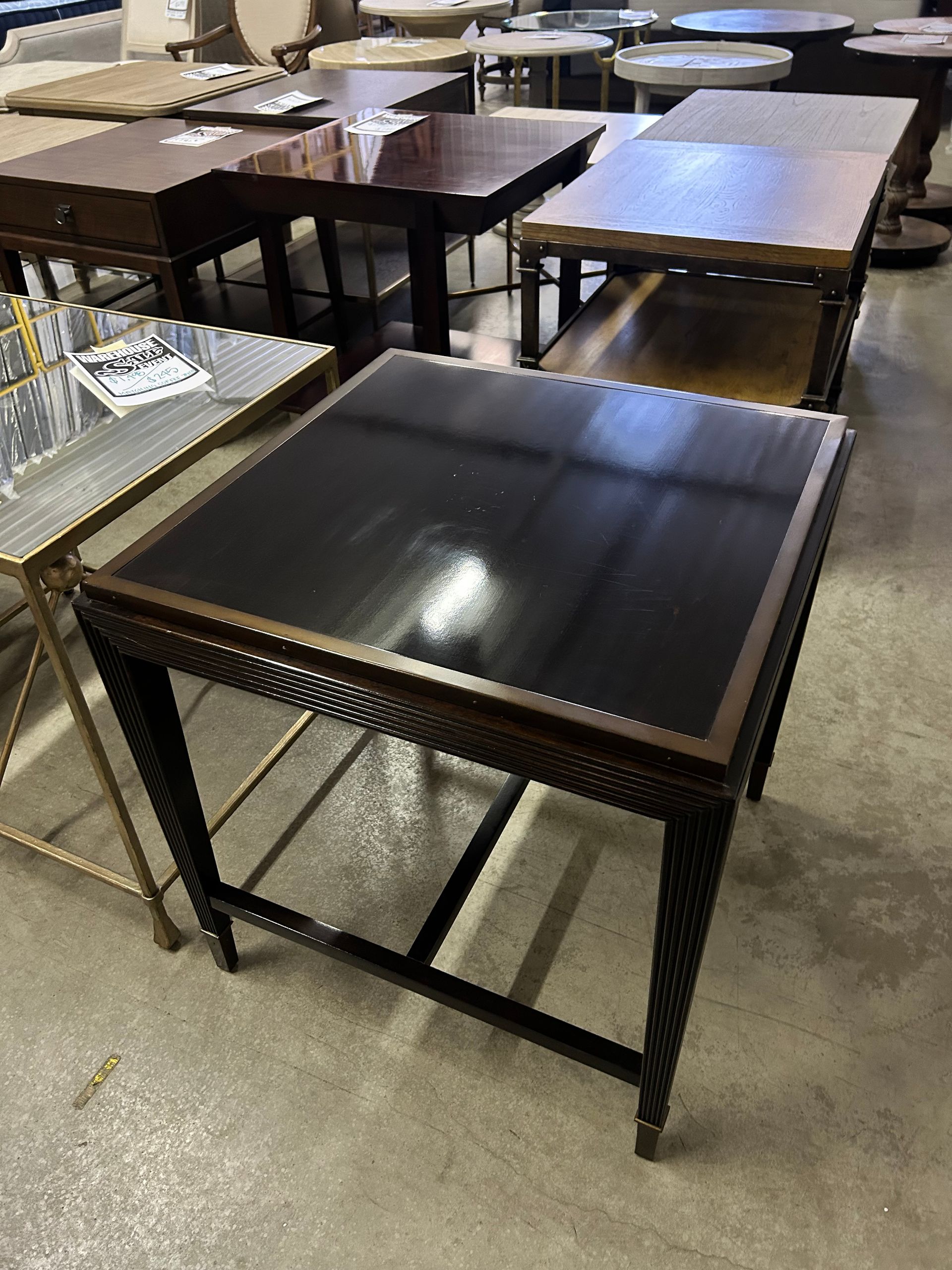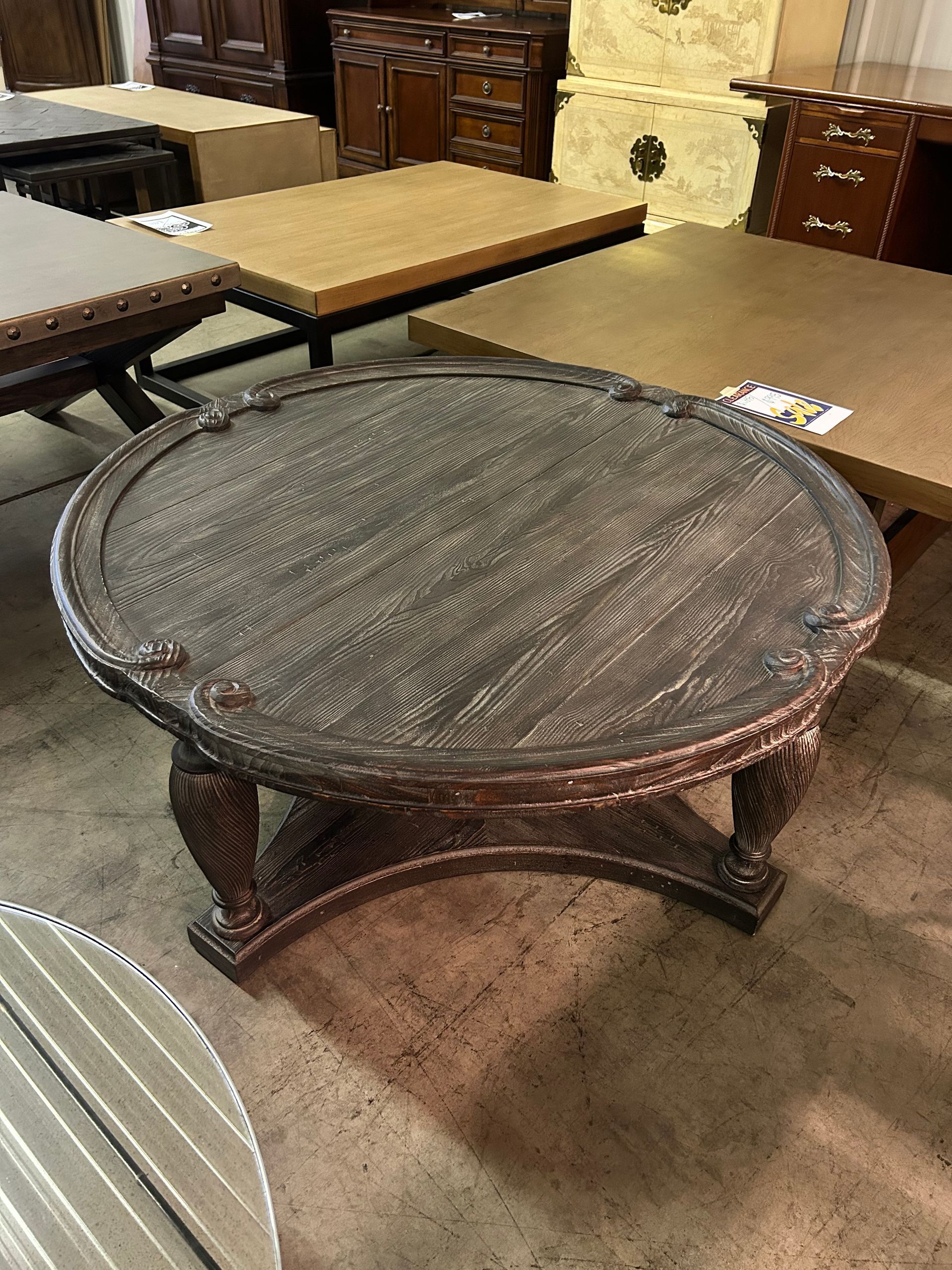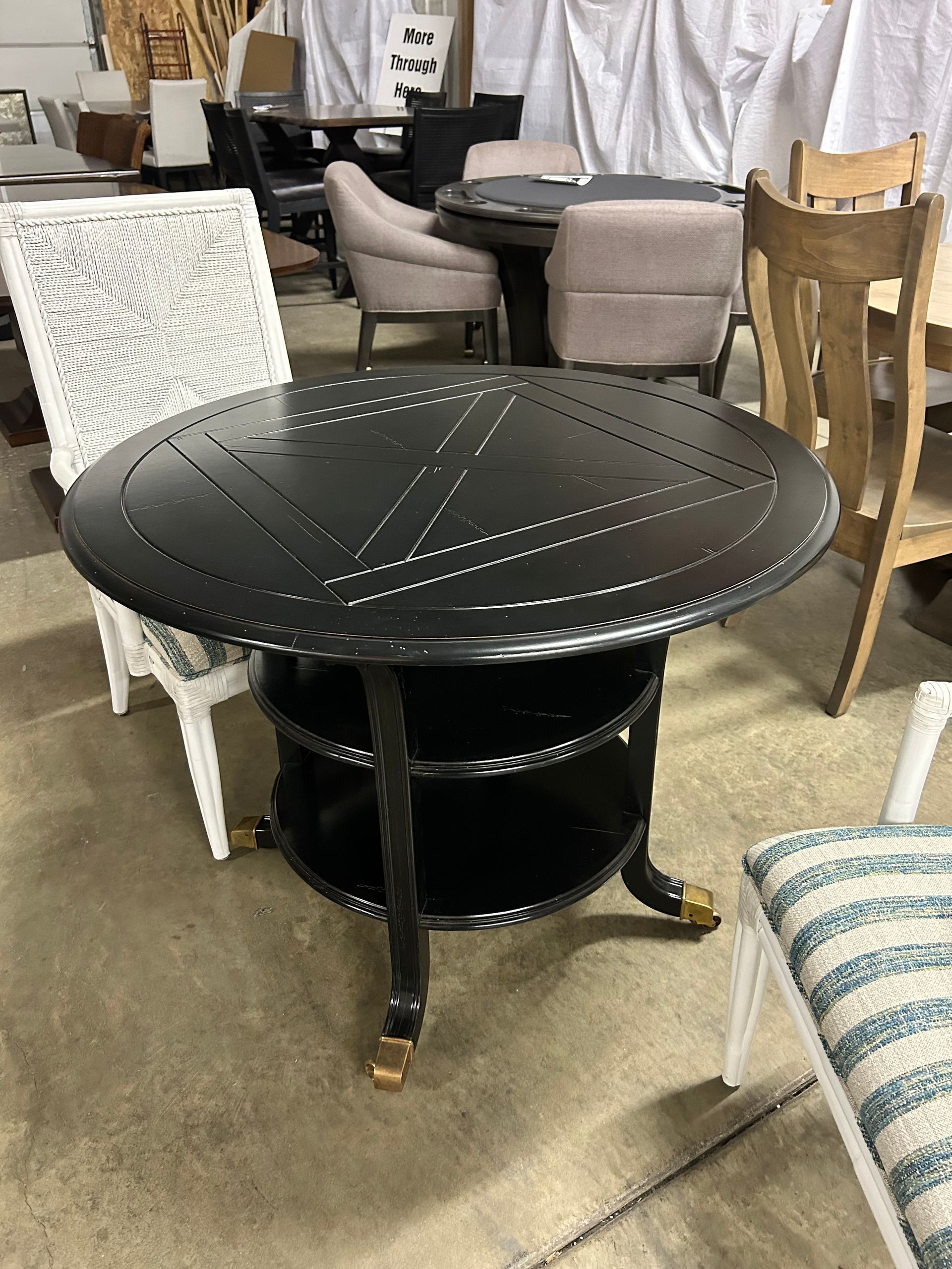 Black wood round table on casters