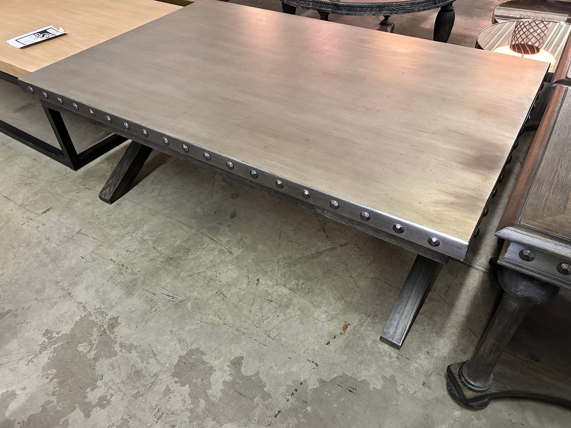 72 inch grey wood rectangular dining table with iron base