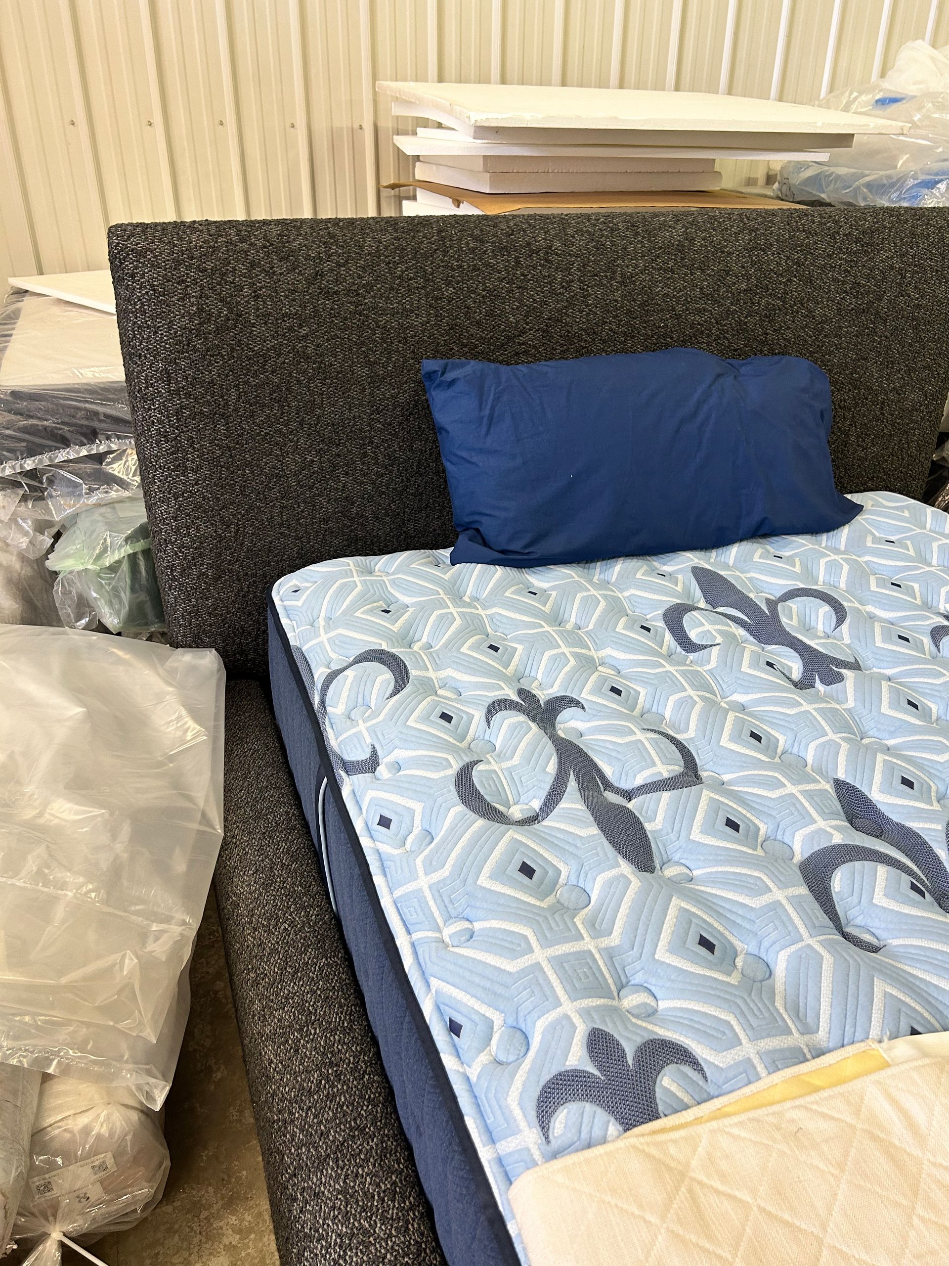 Charcoal upholstered queen platform bed