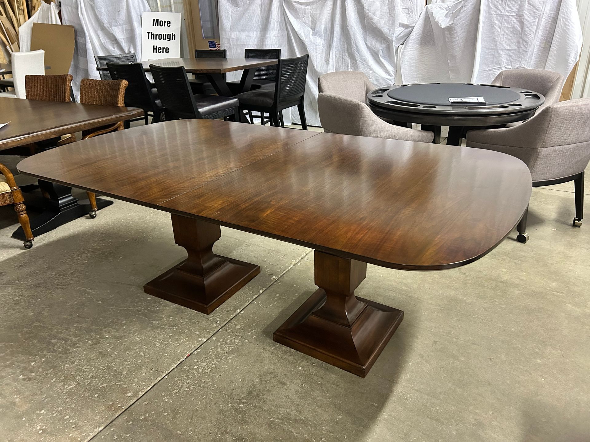 Soft rectangle solid wood double pedestal dining table