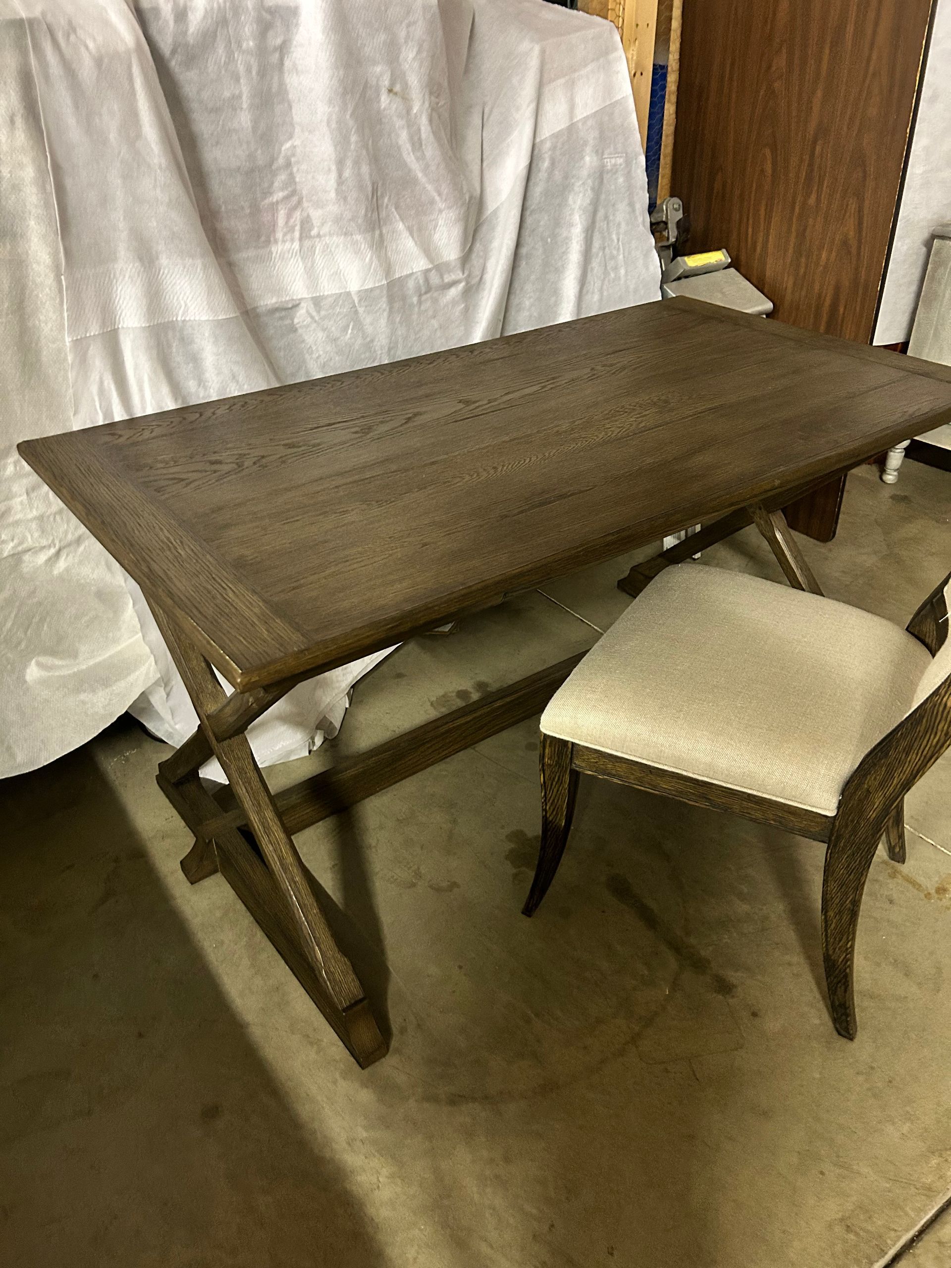 60 inch dining table with 6 white upholstered dining side chairs