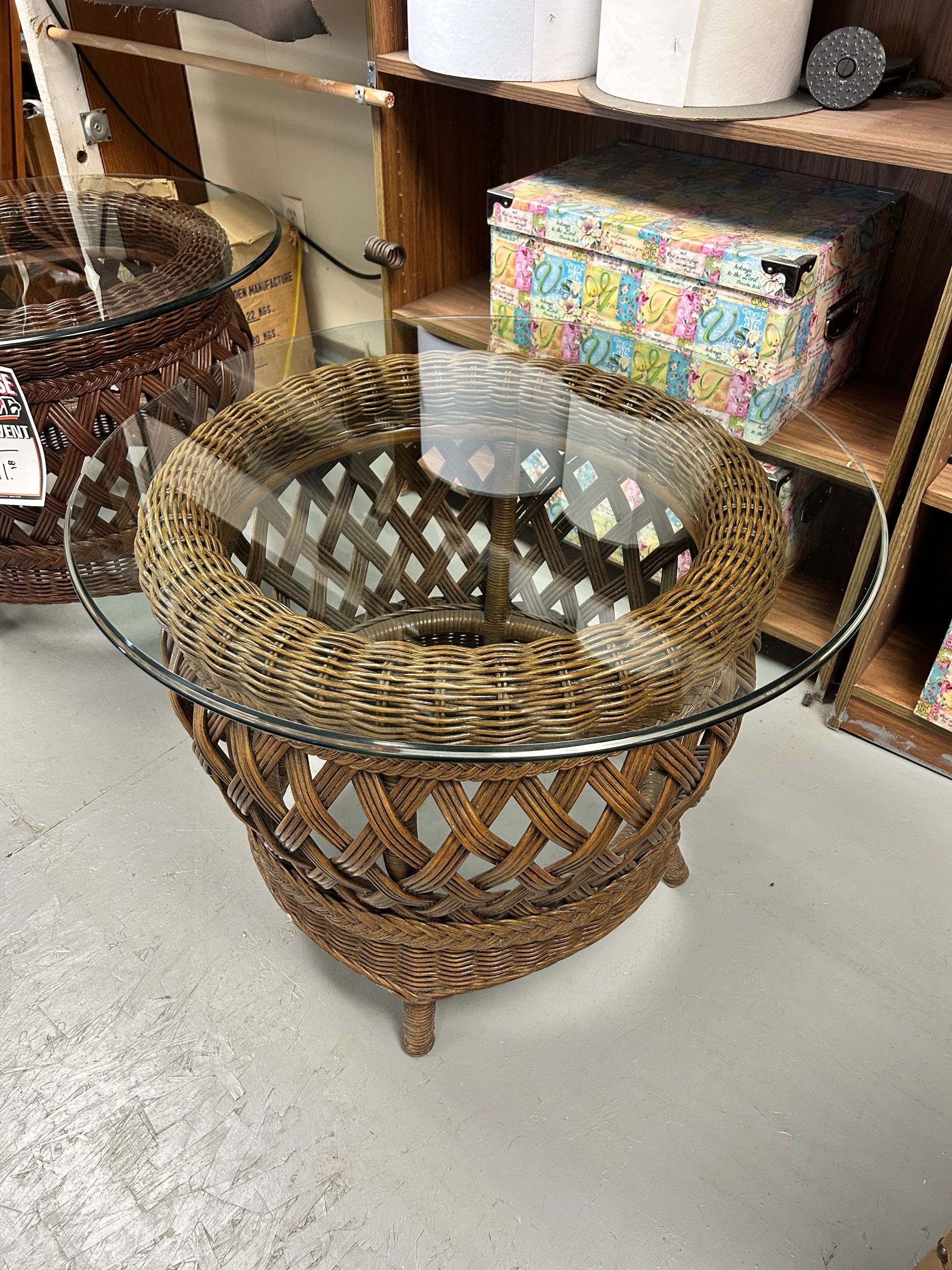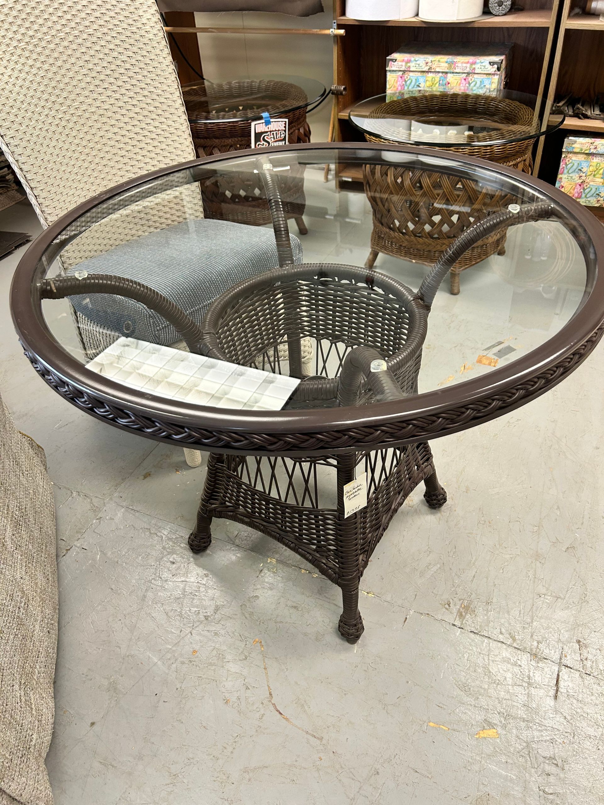 Brown wicker base with glass top round dining table